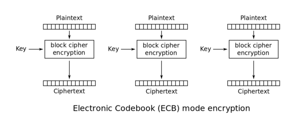 ECB is an encryption mode in which the message is splitted into blocks of X bytes length and each block is encrypted separetely using a key.