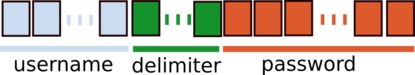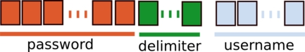 By creating another user with a long username and a short password, we can see that the following pattern is used: username|delimiter|password.