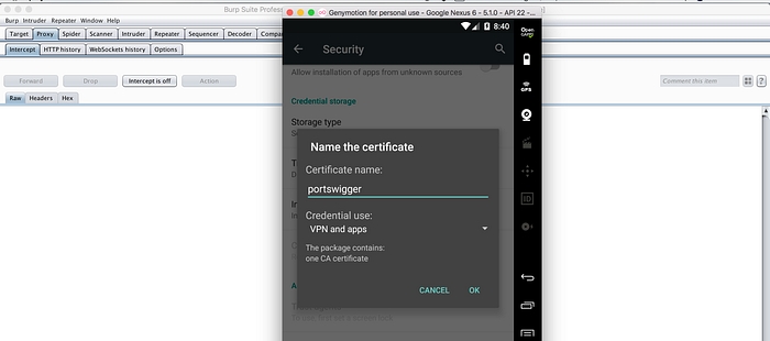 Download burp certificate. — Use your desktop machine to download the certificate.