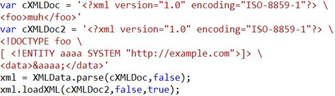 This one is about a simple XXE I discovered. I read the paper "Polyglots: Crossing Origins by Crossing Formats", where they discussed a vulnerability in XMLData.parse. It was possible to use external entities and reference them. I read the specification and it turns out there are more functions than "parse" to read XML. I created a simple xml file, which references an url from the same domain and parsed it with loadXML. It worked: