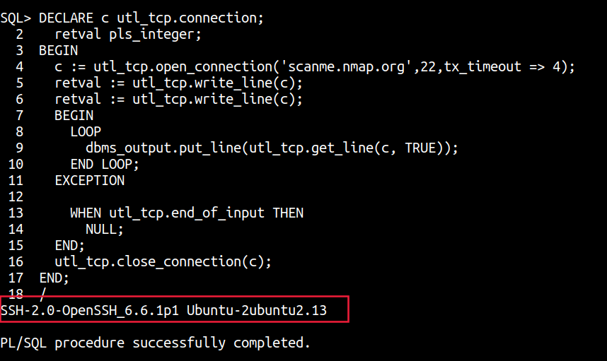 Perhaps the most common and widely documented technique in every Out of Band Oracle SQL Injection tutorial out there is the UTL_HTTP package. This package is defined by the documentation as - The UTL_HTTP package makes Hypertext Transfer Protocol (HTTP) callouts from SQL and PL/SQL. You can use it to access data on the Internet over HTTP.