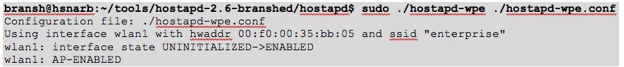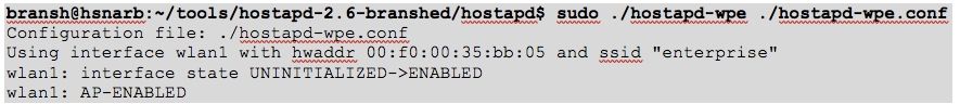 2. Run the modified hostapd-wpe tool to create a fake AP for the target network