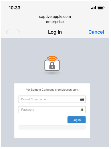 The following screenshot shows the captive portal presented to the iPhone device: